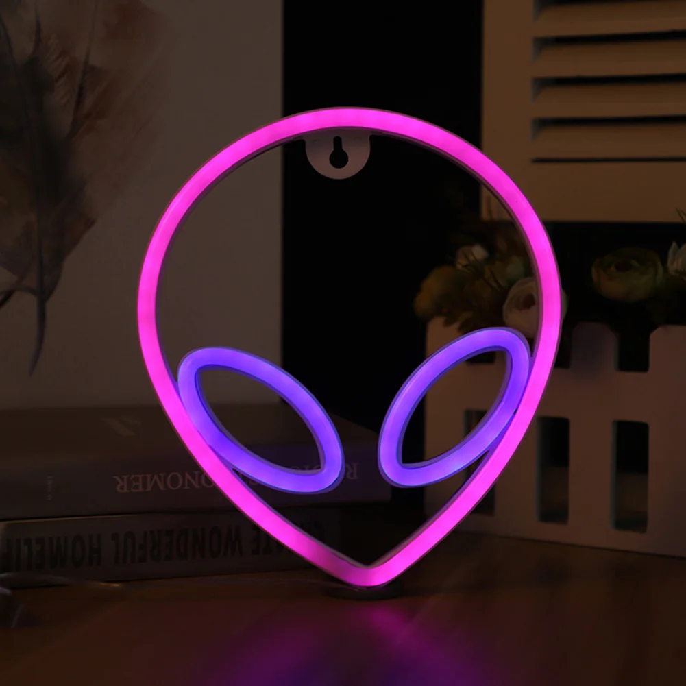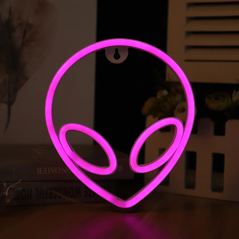 1. Креативная неоновая лампа, разработанная в стиле alien, идеально подходит для детской комнаты, игровой комнаты, гостиной, украшения стен и т. д.