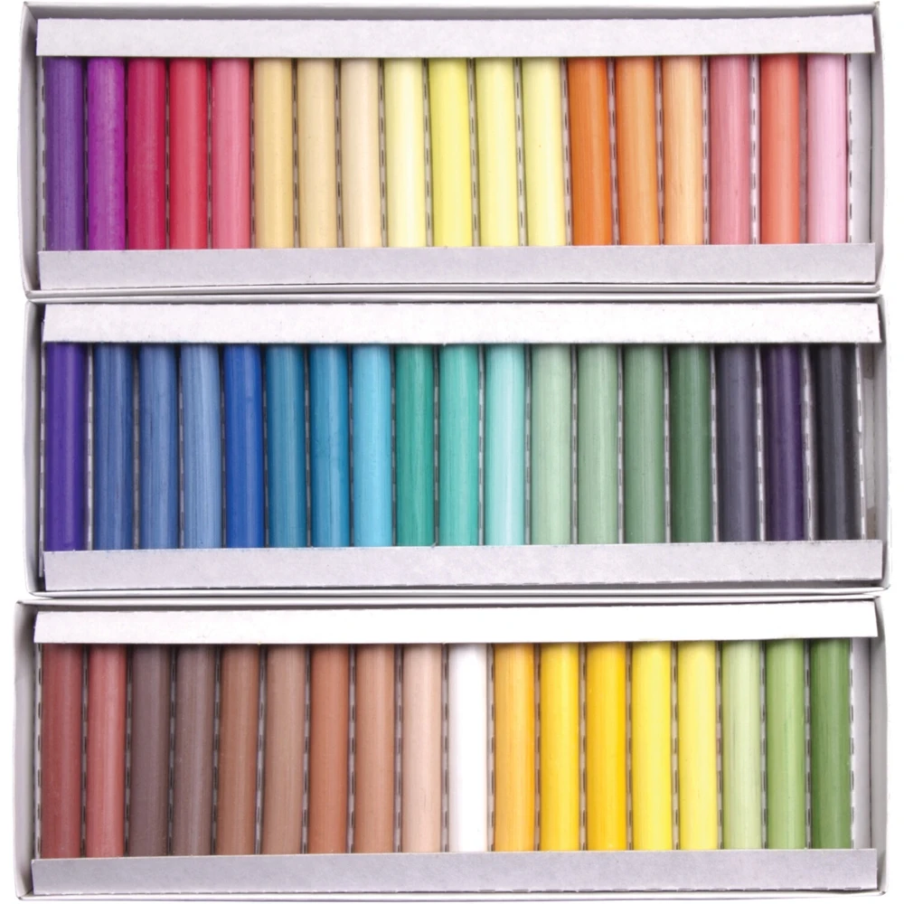 Легко ложится на различные фактуры цветной бумаги, бумагу для рисования, холст, картон, дерево, керамику. Также можно наносить на влажную поверхность или размывать водой для достижения акварельного эффекта. 54 цвета позволяют полностью передать палитру цветов. Высокое качество пигментов и связующего обеспечивает низкий расход материала, хорошую укрывистость и яркость цвета. Пастель имеет вид брусков с круглым сечением, обёрнутых в бумажную обёртку. Она позволяет сохранять руки и одежду чистыми. Не токсична и безопасна при использовании. При попадании на одежду или кожу рук легко смывается тёплой водой. Благодаря компактной упаковке удобно брать с собой.