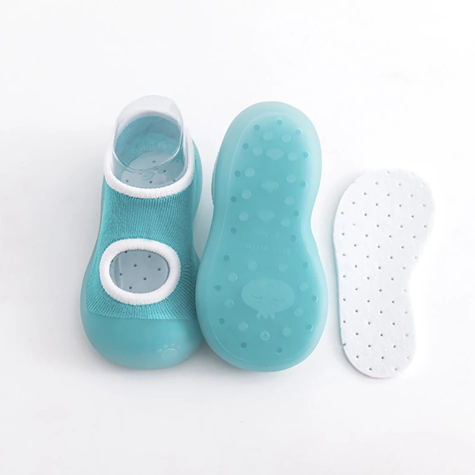 Летняя домашняя обувь для малышей; Однотонные двойные вентиляционные ходунки; Детские домашние носки на низком каблуке
