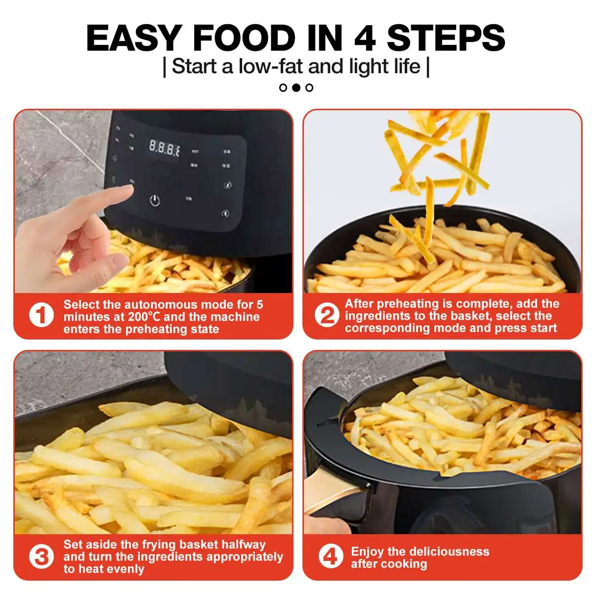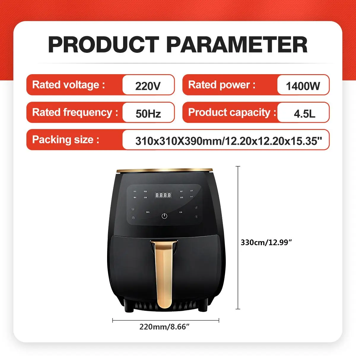 -Большая 4,5 л пространство для приготовления пищи: он может Фрай более вкусная еда в одно и то же время и легко удовлетворять ежедневные потребности каждого члена семьи.