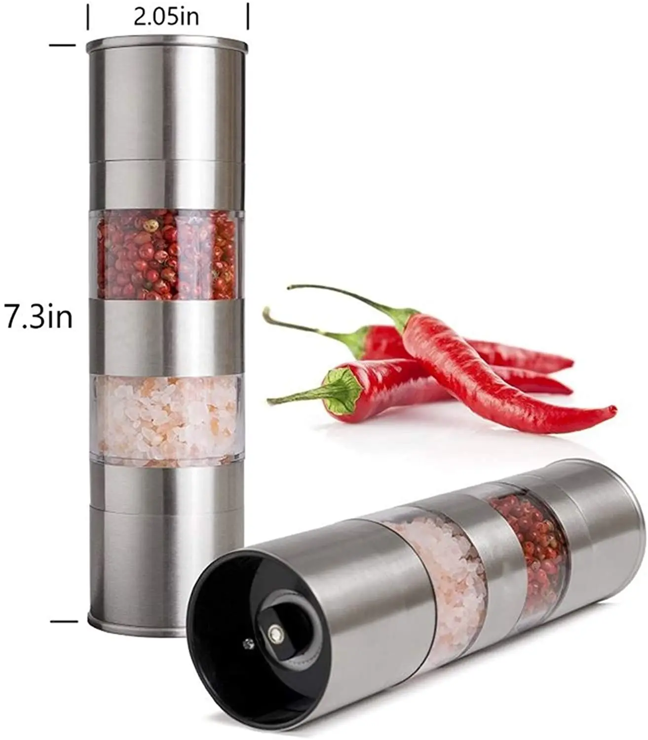 Show moreДвухслойная мельница для соли и перца, ручная мельница из нержавеющей стали, зернистый фарфор, порошок, сердечник, кухонный инструмент