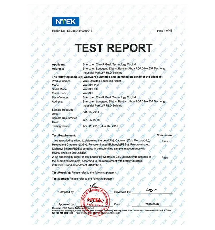 Инспекция и сертификация CE XiaoR GeeK