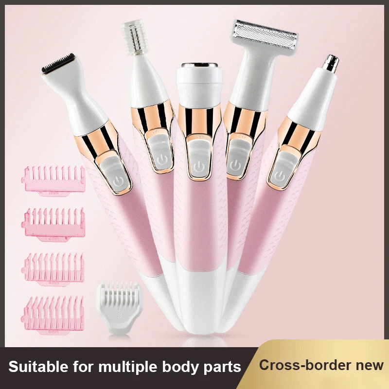 5 in 1 hair removal set, this rechargeable electric hair removal set with 5 detachable attachments can remove face, arms, legs, bikini line, nose, beard, side horns and eyebrows and other Body parts of hair. Men can also shave.