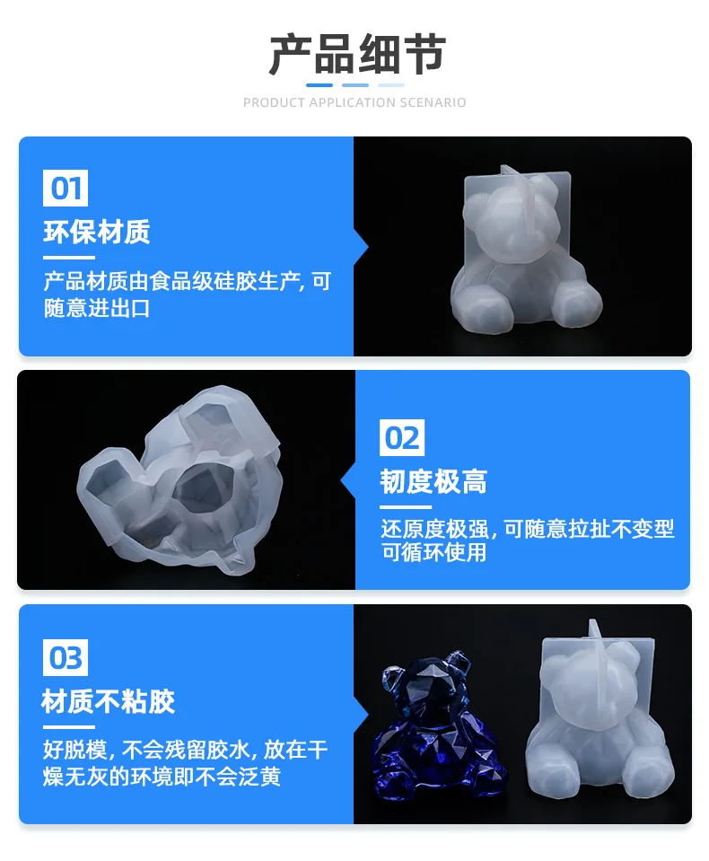 Материал изделия: пищевой силикон Использование продукта: DIY Ручная работа клеевая форма Высокая прозрачность и высокий зеркальный эффект делают DIY более интересным Дорогие друзья, сейчас есть модель, и вы можете связаться со службой поддержки клиентов для большого количества. Этапами производства заключаются в следующем: Основной материал: пресс-форма ab Клей мерный стаканчик Необходимые инструменты: одноразовые перчатки, одноразовые палочки для еды, одноразовые чашки, точность цвета, электронные весы Этапы производства: Шаг 1: Подготовьте то, что вам нужно [клей ab, форма, одноразовые перчатки, палочки для еды, чашки, зубочистки, измерительные чашки Шаг 2: Готов к цвету эссенции Шаг 3: Налейте клей ab в 3:1 смесь в бумажный стаканчик и перемешайте до тех пор, пока не станет чистой водой Шаг 4: Перемешать, чтобы завершить замену Шаг 5: Метод 1: Налейте клей ab в форму и Используйте зубочистку, чтобы окунуть его в форму, которая уже приклеена. Шаг 6: Следующий метод 1: Вы можете использовать зубочистки, чтобы нарисовать некоторые простые узоры, и можно использовать только небольшую каплю зубочисток. Шаг 7: Способ 2: Если вы хотите поместить цветы в готовое изделие, сначала выберите цветы и высушите их осушителем в течение дня или двух, положите высушенные цветы в форму, И поместите небольшой слой клея, чтобы зафиксировать цветы и дождитесь, пока цветы будут закреплены Перед наполнением формы.
