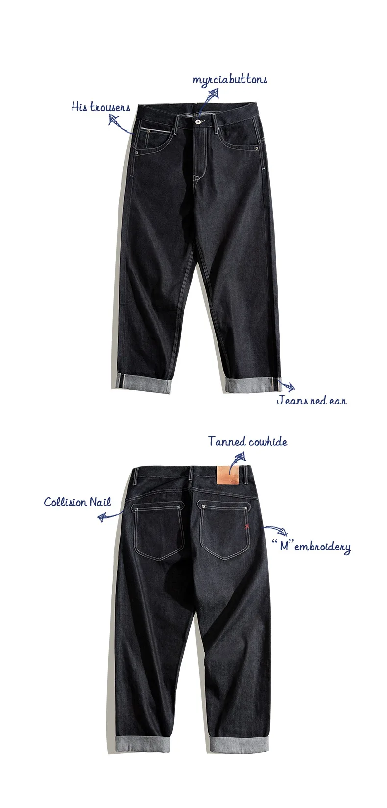 Мужские джинсы Стойкий цвет размера плюс 3XL свободные широкие в ноге джинсовые