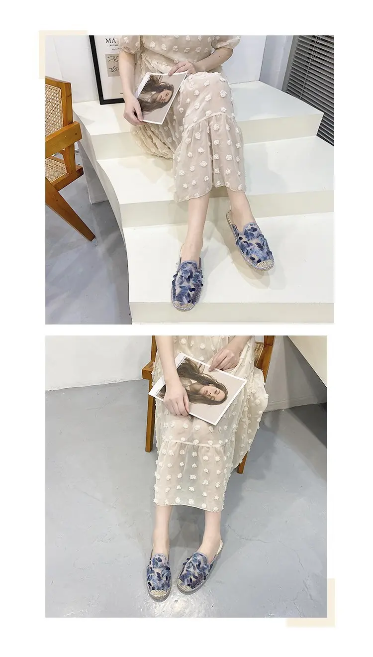 Женские сетчатые шлепанцы летние сандалии из хлопчатобумажной ткани на плоской
