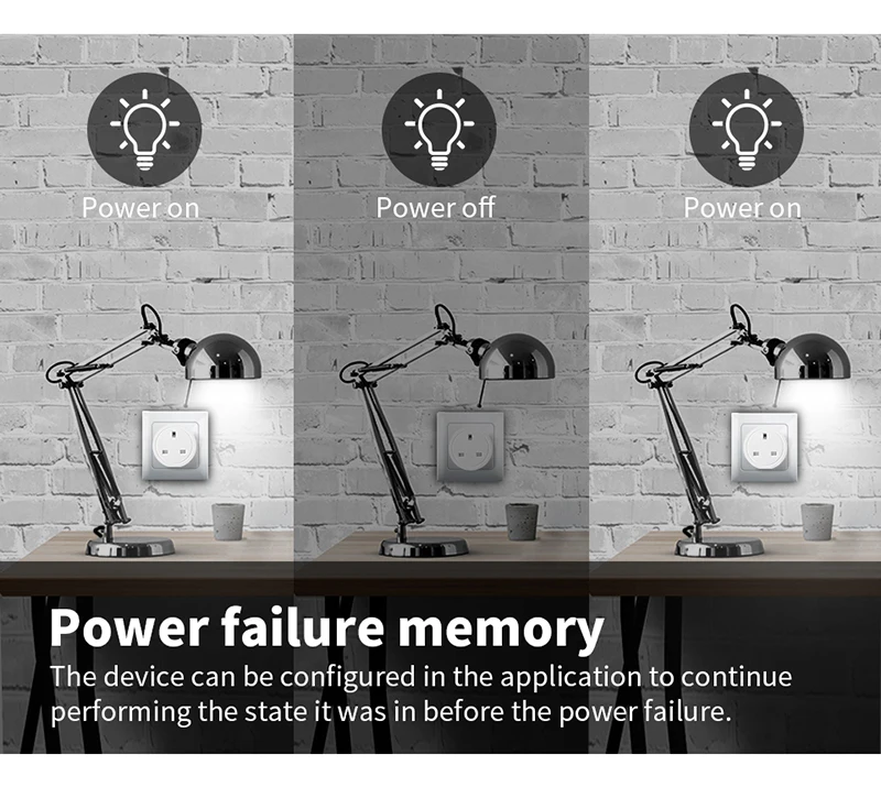 Устройство может быть настроено в приложении для продолжения выполнения состояния, в котором оно было до сбоя питания.