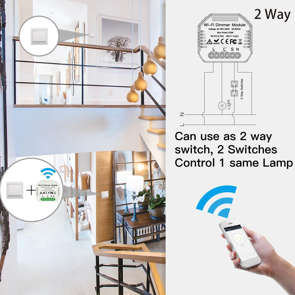 Характеристика: 1. Легко заменить традиционные диммер светильник переключатель, чтобы сделать его smart, могут сделать вашу существует 2 позиционный переключатель smart, кроме того, просто установите 1 DIY Смарт диммер, костюм для ЕС/Великобритания коробка переключателя, пожалуйста, подтвердите размер перед заказом. 2. 0%-100% затемнения: Регулировка яркости через голосовой помощник, как Amazon Alexa Google Home или ваш мобильный телефон. 3. Wi-Fi управление через ваш мобильный телефон 2,4G сетей обеспечивает необходимое подключение к модулю диммера DIY без необходимости отдельного концентратора. 4. Использует популярное приложение smart life/Tuya на базе android / ios, универсальное приложение позволяет полностью контролировать свет или совместимые устройства. Несколько вариантов программы позволяют спланировать точное время для включения света. Включение/выключение автоматически. 5. Дайте вашим устройствам максимальную мощность вкл/выкл умный макияж, просто подключите этот модуль Do-It-Yourself между вашим устройством и источником питания, чтобы преобразовать большинство любых совместимых продуктов в умный. Спецификация: Входное напряжение: 90 В ~ 250 В Проводка: прямой провод и нейтральный провод Максимальная мощность нагрузки: 150 Вт (светодиодный) Wi-Fi, Стандартный: 2,4 ГГц 802,11 b/g/n Название приложения: Tuya Smart/Smart Life Срок работы: 100000 во время проведения операции Продукт Размеры: 52X47X18 мм/2,05X1,85X0,71 "(Д X Ш X В) Вес изделия: 32 г Размер упаковки: 58X55X30 мм/2,28X2,17X1,18" Посылка Вес: 47 г Примечание: В связи с различиями мониторов и эффектами освещения реальный цвет товара может немного отличаться от цвета на фотографиях. Спасибо! Возможны отклонения в 1-3 мм вследствие измерений вручную. 1 X кронштейн 1 х Руководство