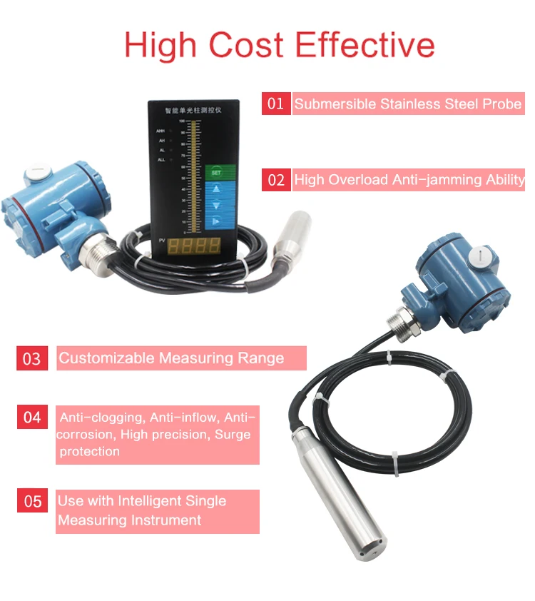 <1>. Погружной Датчик уровня воды QDY60A, нержавеющая сталь 304 & 316 и герметичный корпус делают его пригодным для большинства промышленных жидкостей и масел. Сварной корпус протестирован в доме с помощью тестера утечки гелия для обеспечения надлежащей защиты.