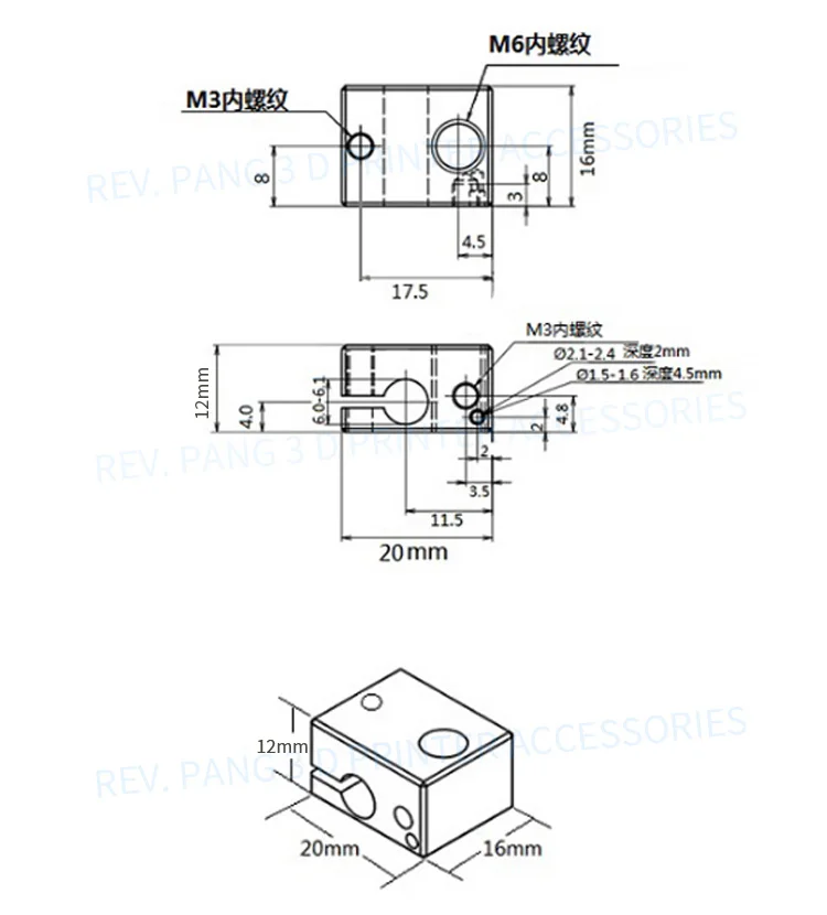 Suitable for Filament : both 1.75mm and 3.0mm M6 Nozzle