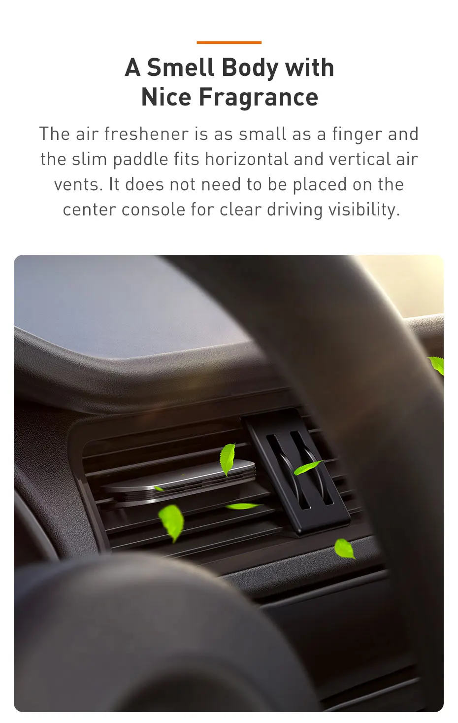Освежитель воздуха так же мал, как палец, а тонкий весло подходит для горизонтальных и вертикальных вентиляционных отверстий. Его не нужно размещать на центральной консоли для четкого освещения вождения.
