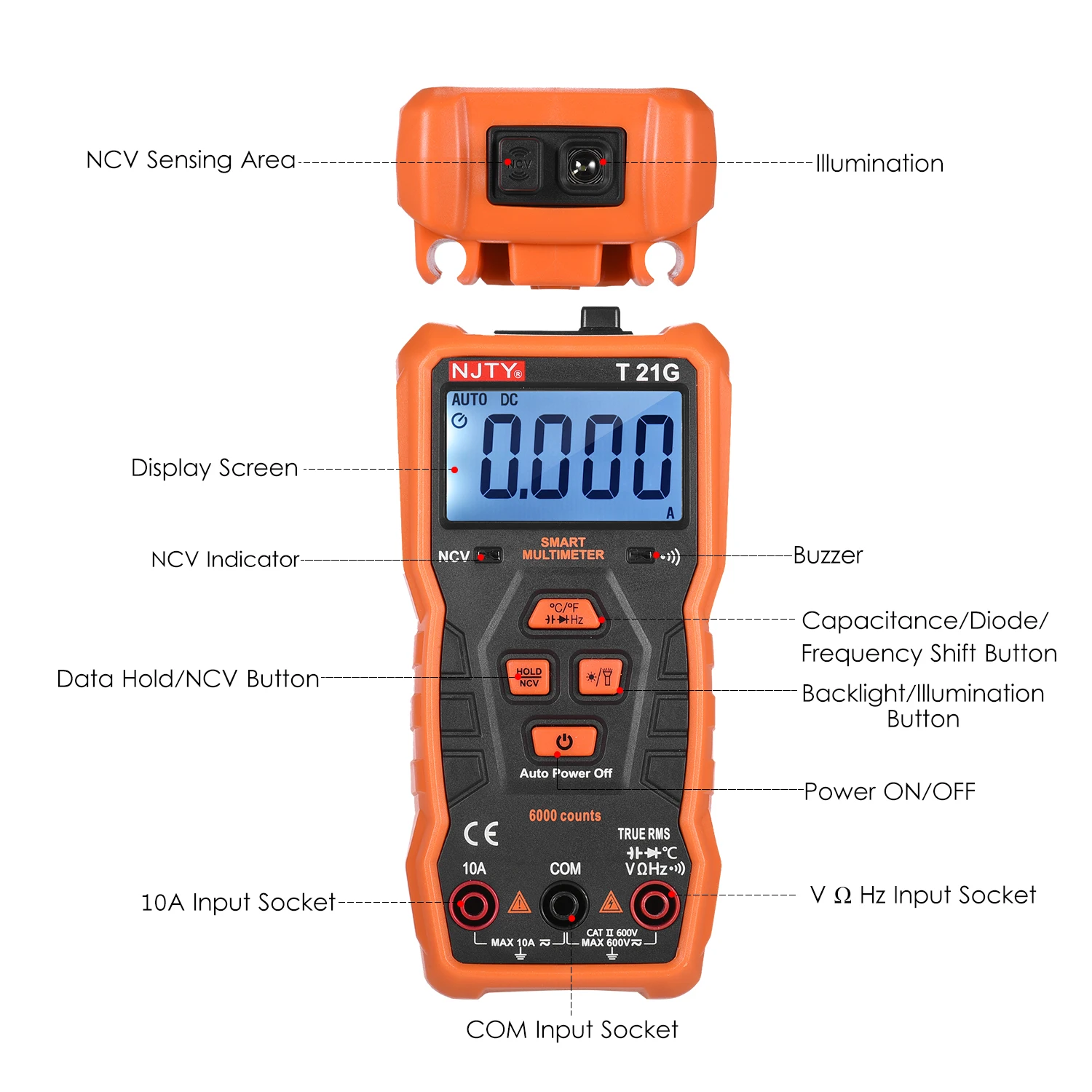 Счетчик-это портативный интеллектуальный, который может автоматически идентифицировать ACV, DCV, сопротивление, емкость, зуммер и выбрать диапазон соответственно. А также особенности автоматического отключения питания, подсветки, подсветки, диодов, зуммера, тестирования NCV, обнаружения живого провода, истинного rms, индикатора низкого заряда батареи и многого другого. Пользователи, не имеющие профессиональных физических знаний, могут легко измерить технические данные электроприборов.