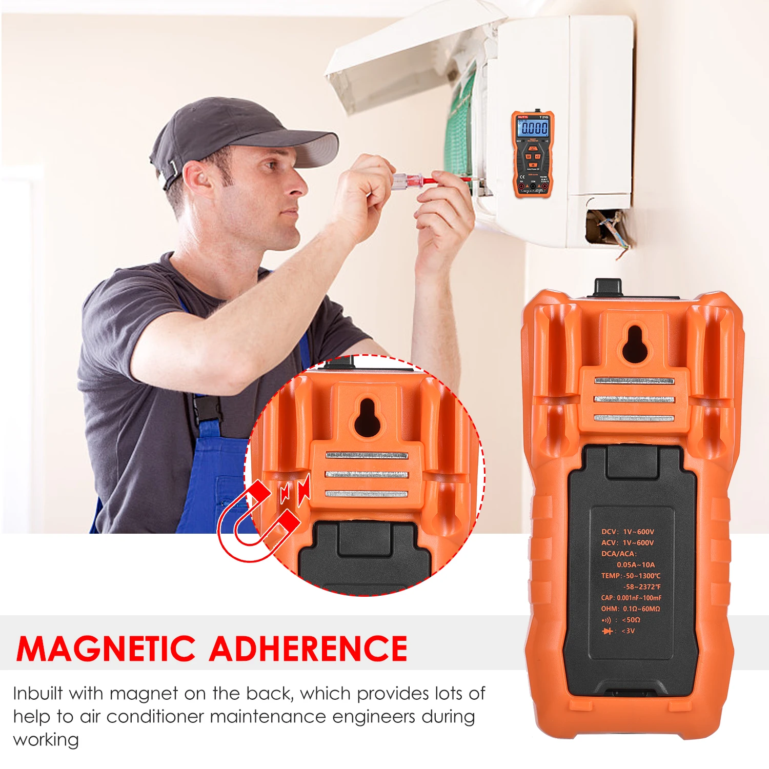 Магнитное Крепление: Встроенный с магнитом на спине, который обеспечивает большую помощь инженерам по обслуживанию кондиционера во время работы.