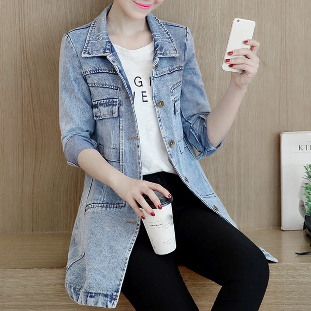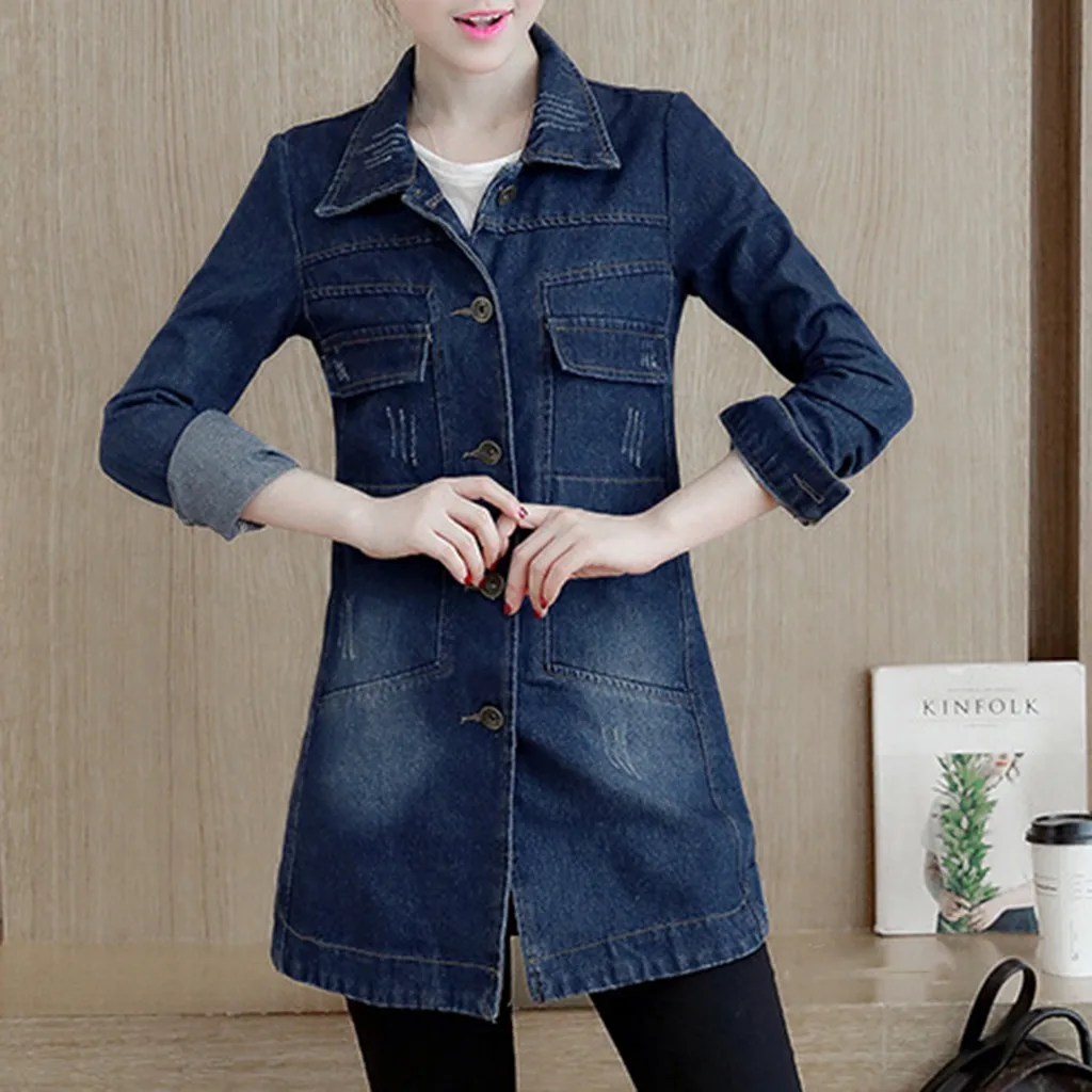 Новая джинсовая куртка размера плюс для женщин 2020 Повседневная зимняя джинсовая куртка с отворотом на пуговицах винтажные женские длинные джинсовые куртки кардиган