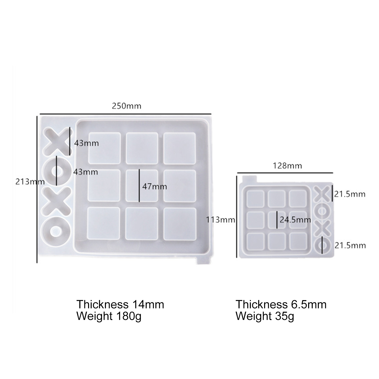 3. Форма имеет 2 разных размера, L размер доски смолы формы 25x21.3cm. И размер S XO Веселая Игра Смола плесень 12,8x11,3 см. Идеально подходит для изготовления настольных игр, журнального столика, образования для детей, декора игровой комнаты