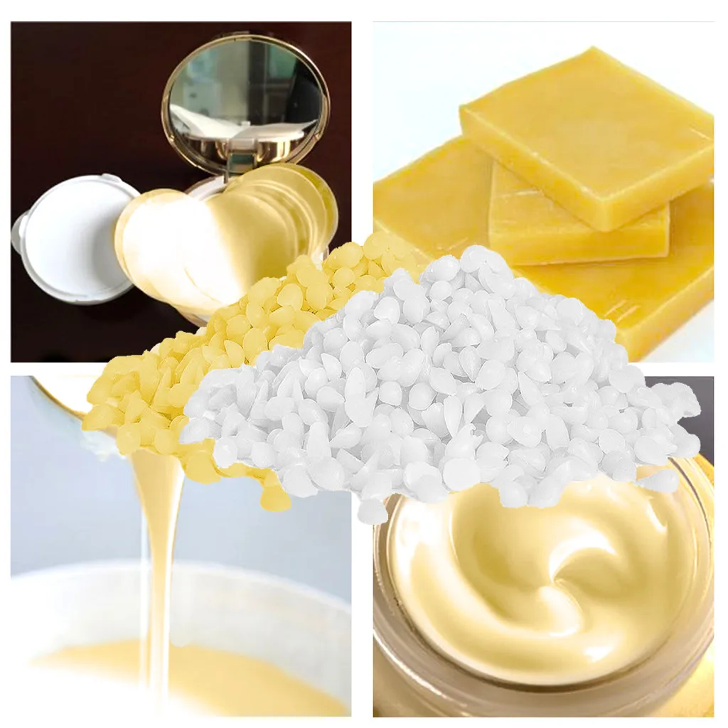 White/Yellow Bees Wax DIY Wax Candle Making Lipstick Material Feature: 100% pure, refined, and naturally beeswax granules Natural yellow color and smell NO ADDITIVES DO-IT-YOURSELF: Perfect for DIY Projects like Candle, Lip Balm, Cream, Lotion, Deodorant, Furniture Polish, Crayons, Body Butters, Skin Care, etc Can be used for home care products, salves, lotions and cosmetics to improve appearance and consistency Great material for aromatic candles, crafts, projects, thouands of uses. 100% pure Choose the weight : 200/500/1000g DIY soaps.Candles.Lip balms.Skin creams.All sorts of cosmetics The Difference Between Yellow and White Beeswax Beeswax has been heated and cleaned to filter out debris. It varies in color from light to dark yellow. This version of beeswax is ideal for candle-making and other products where you'd like the natural color of the stuff to come through.