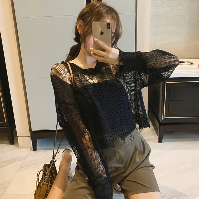 Элегантный вязаный свитер пуловеры модные женские однотонные рубашки с длинным