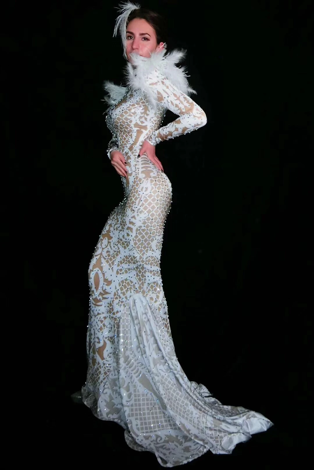 Сексуальное Серебряное Стразы фиолетовое Сетчатое прозрачное длинное платье