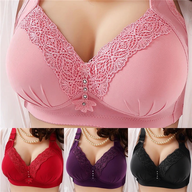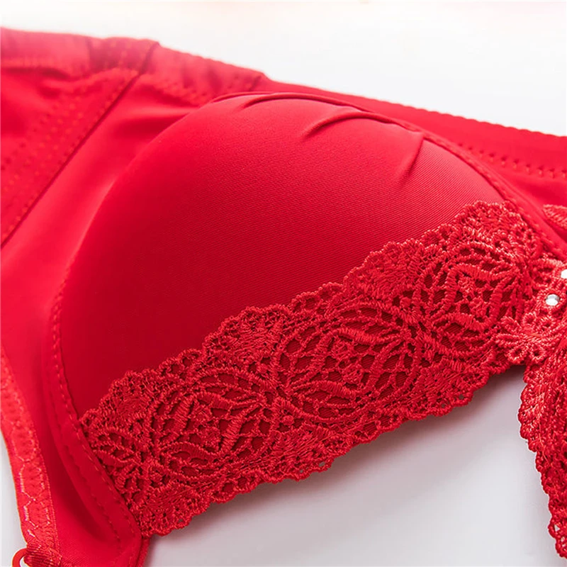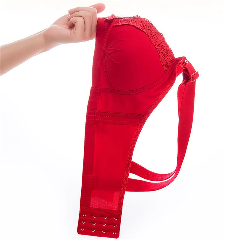 Бюстгальтер женский кружевной без косточек пуш-ап однотонный с пряжкой сзади |