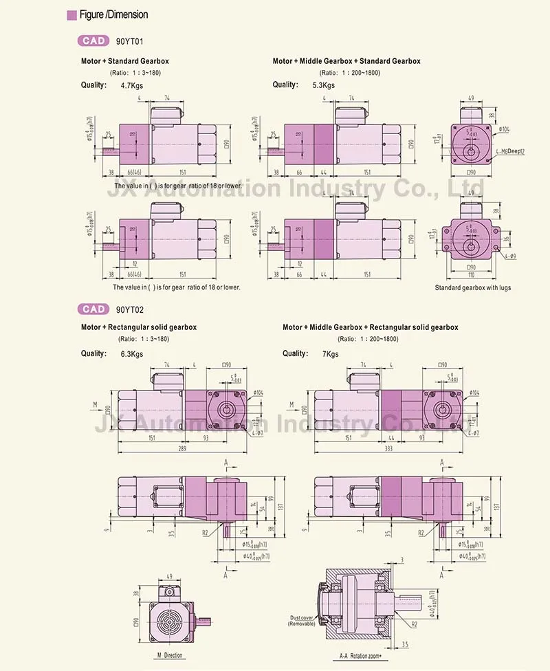 JSCC 90W Single Phase 220V AC Speed Motor 90YT90GV22 + 90GK(F)5RT Gear Ratio 1:5