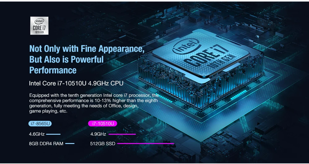 Оснащен Новинка 10th поколения Intel Core i7/i5 процессор, самая высокая частота ядра может достигать 4,9 ГГц, легко управлять различных повседневных задач, таких как программное обеспечение управления, аудио и видео.