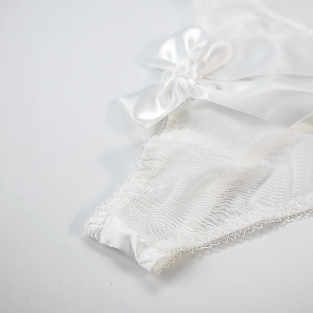 Sexy Silk Satin Seamless Panties Women Plus Size Mid Waist Cotton Crotch Thin Underpants Female Cute Bow Black Briefs Underwear | Женская