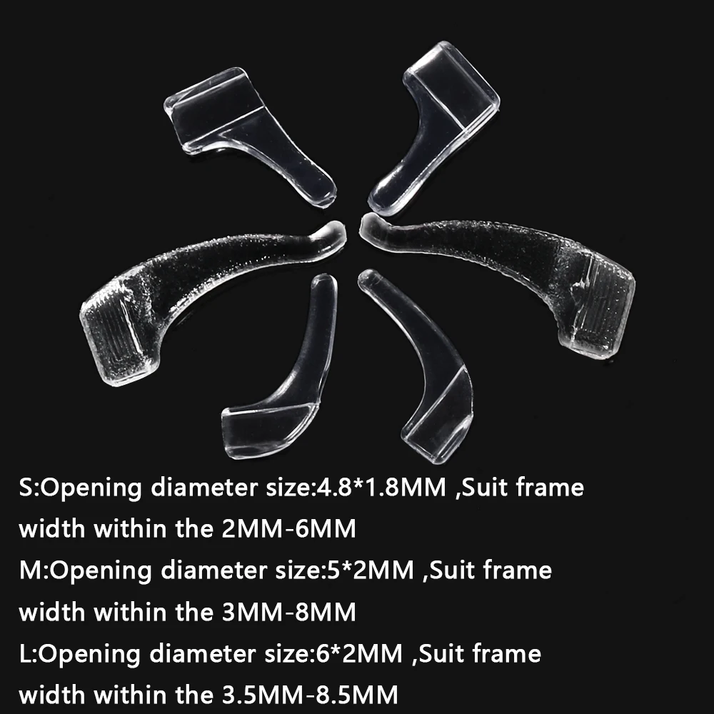 Посылка включает в себя: 10 пар силиконовых ушных крючков для очков (противоскользящие)