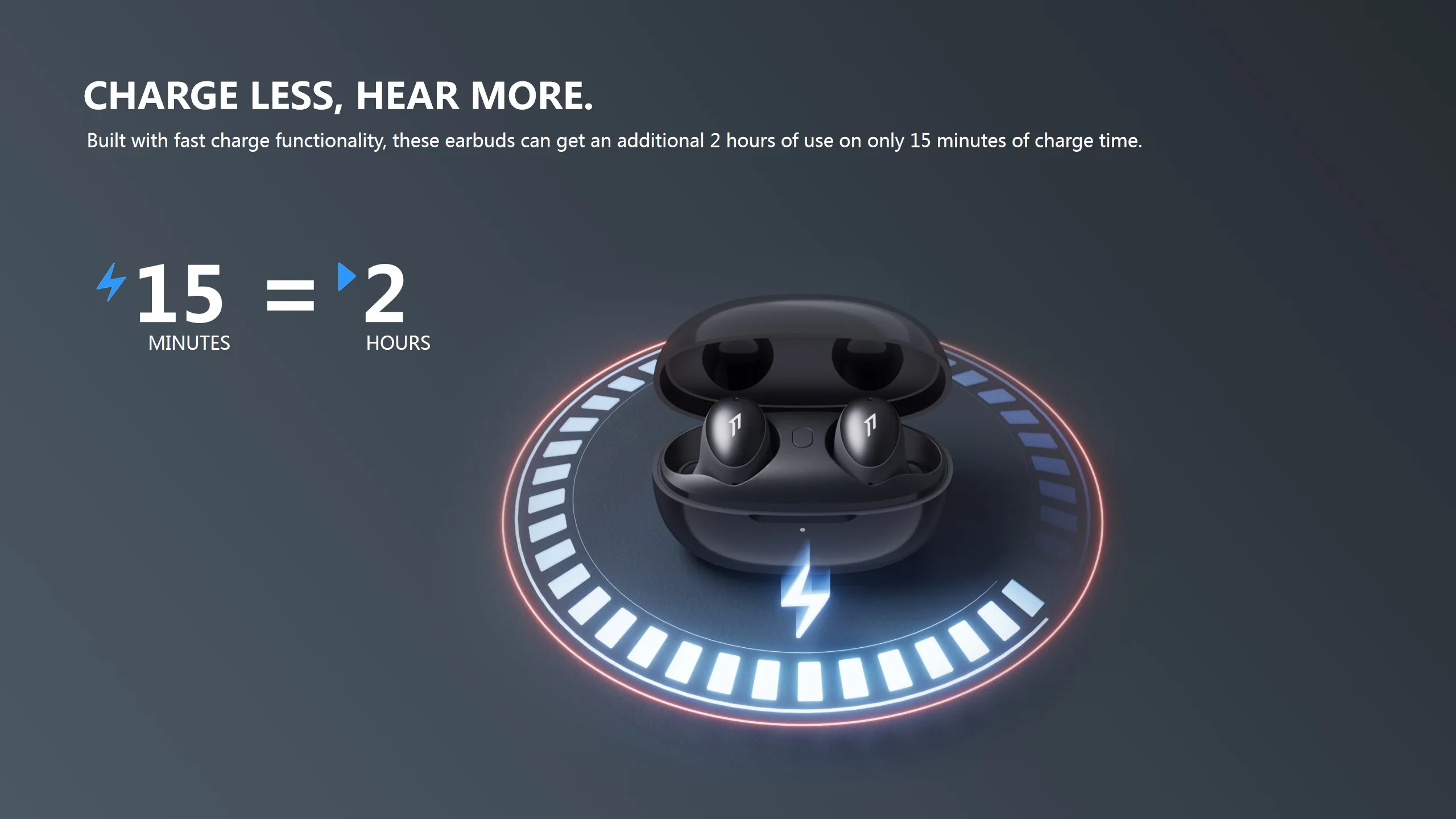 Благодаря функции быстрой зарядки эти наушники могут получить дополнительные 2 часа использования всего за 15 минут зарядки.