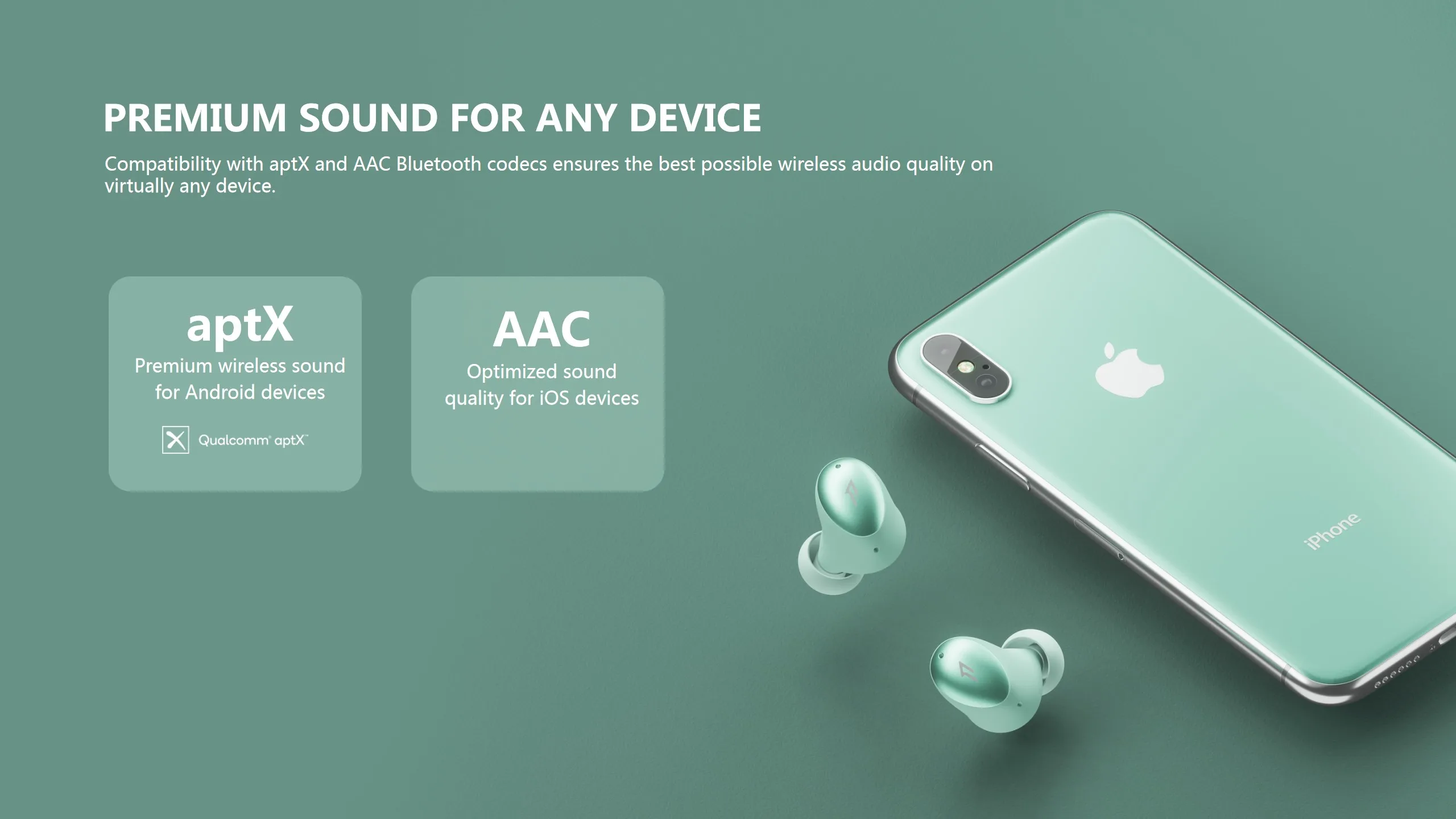 Совместимость с Кодеками aptX и AAC Bluetooth обеспечивает наилучшее качество беспроводного аудио практически на любом устройстве.