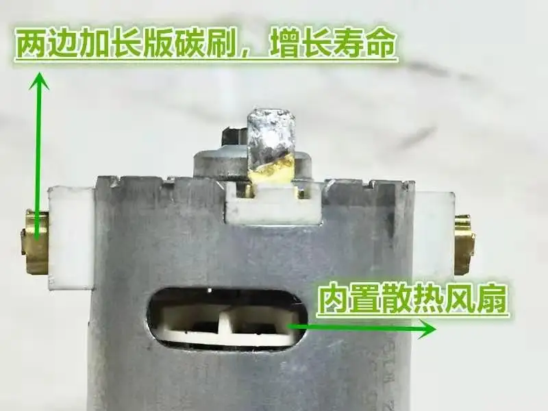 The movement of this vacuum cleaner is more upscale than ever. The motor uses a 545 high-speed brushed motor. There is a cooling fan inside. The carbon brush is an extended version, which is twice as long as ordinary carbon brushes! Life expectancy is also doubled!