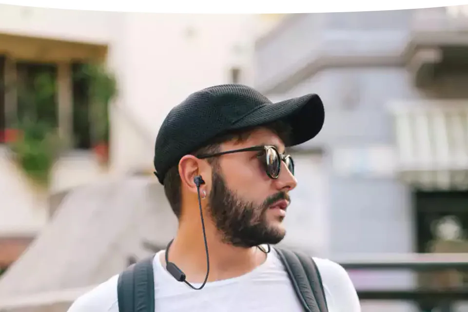Наушники остаются комфортно закреплены и не запутываются на шее, когда они не используются.