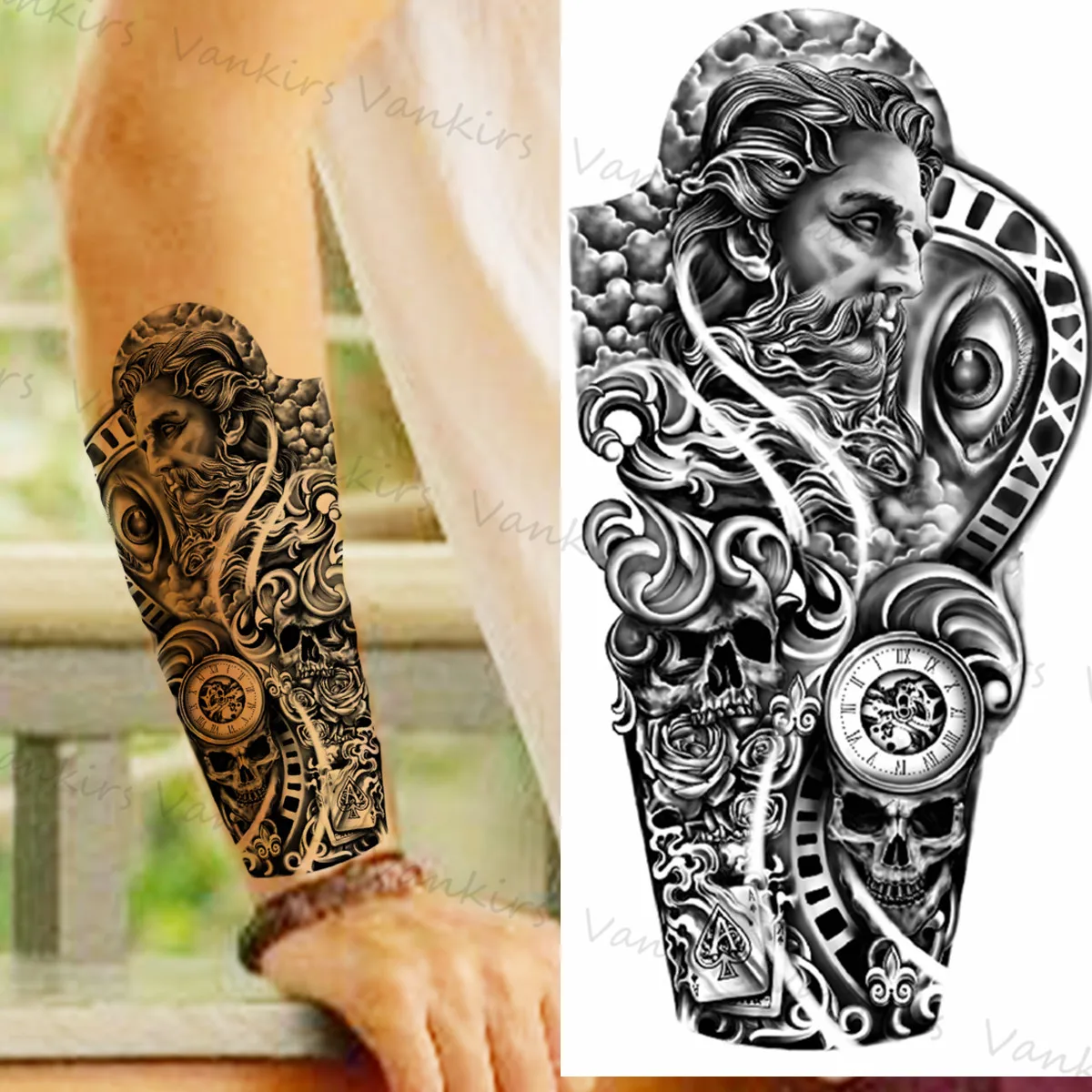 Черный компас тотем временные татуировки для мужчин женщин мужчин Пасьянс крест Лев молиться череп поддельные наклейки-тату на руку тело тату 3D