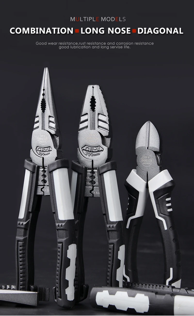 2. Multi specification pliers are widely used in auto, electronic, pipeline and home appliance repair,include cutting, clamping, stripping,
