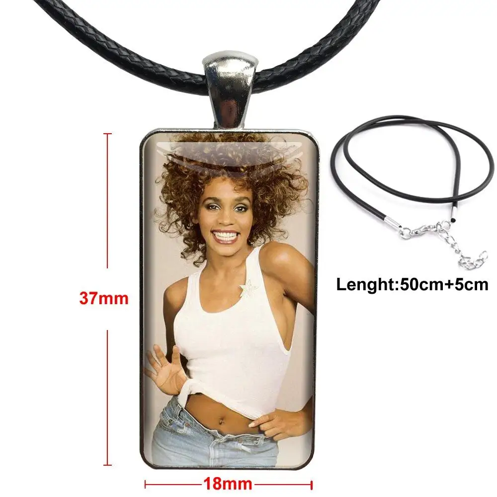 For Women Christmas Gift Stunning Fashion Glass Cabochon Pendant Necklace Women Steel Color Choker Rectangle Necklace Retail Whitney Houston Star