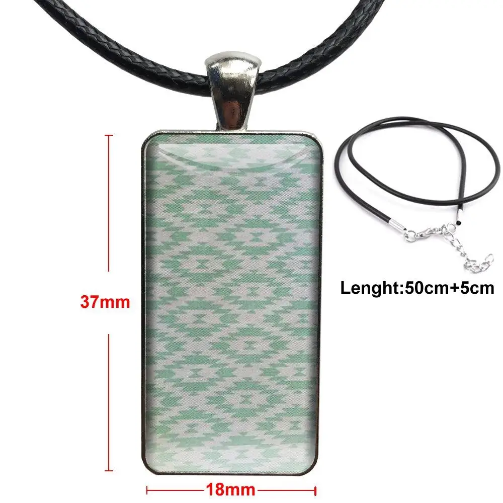 Этнический зеленый ацтекский аутентичный стальной цветной стеклянный кабошон с прямоугольной подвеской ожерелье-чокер для женщин ювелирные изделия