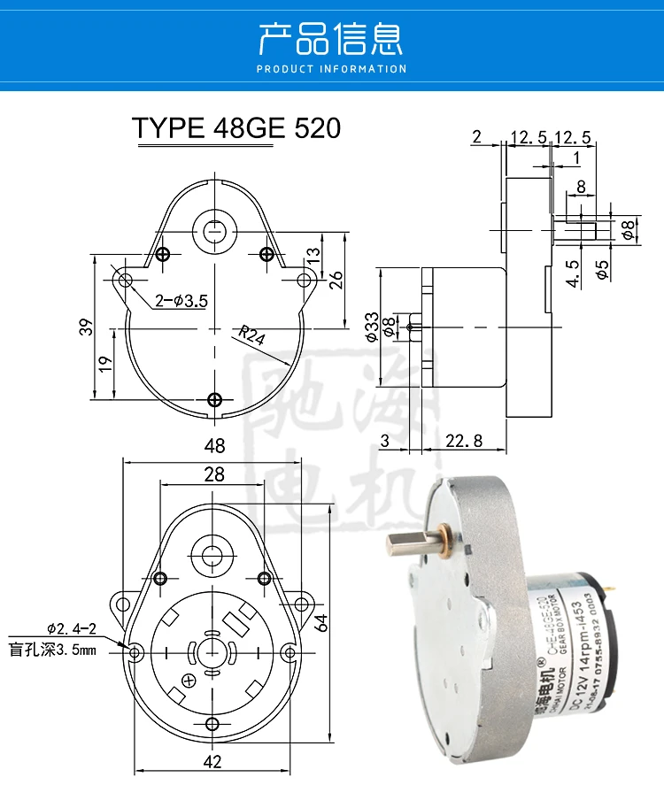 Модель: CHE-48GE-520 двигатель постоянного тока с постоянным магнитом в форме груши