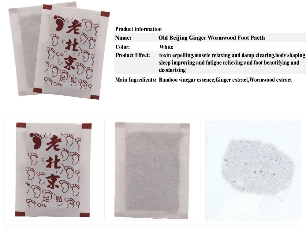 Подушечки для ног содержат натуральные ингредиенты, которые стимулируют эти акупунктурные точки через комбинированное действие дерева/бамбукового уксуса, дальней инфракрасной энергии и отрицательных ионов выбросов. Эта стимуляция приводит к поломке воды и молекул отходов, которые бесплатно блокируют кровообращение и лимфатические системы. Очищение начинается естественным образом на подошвах наших ног.