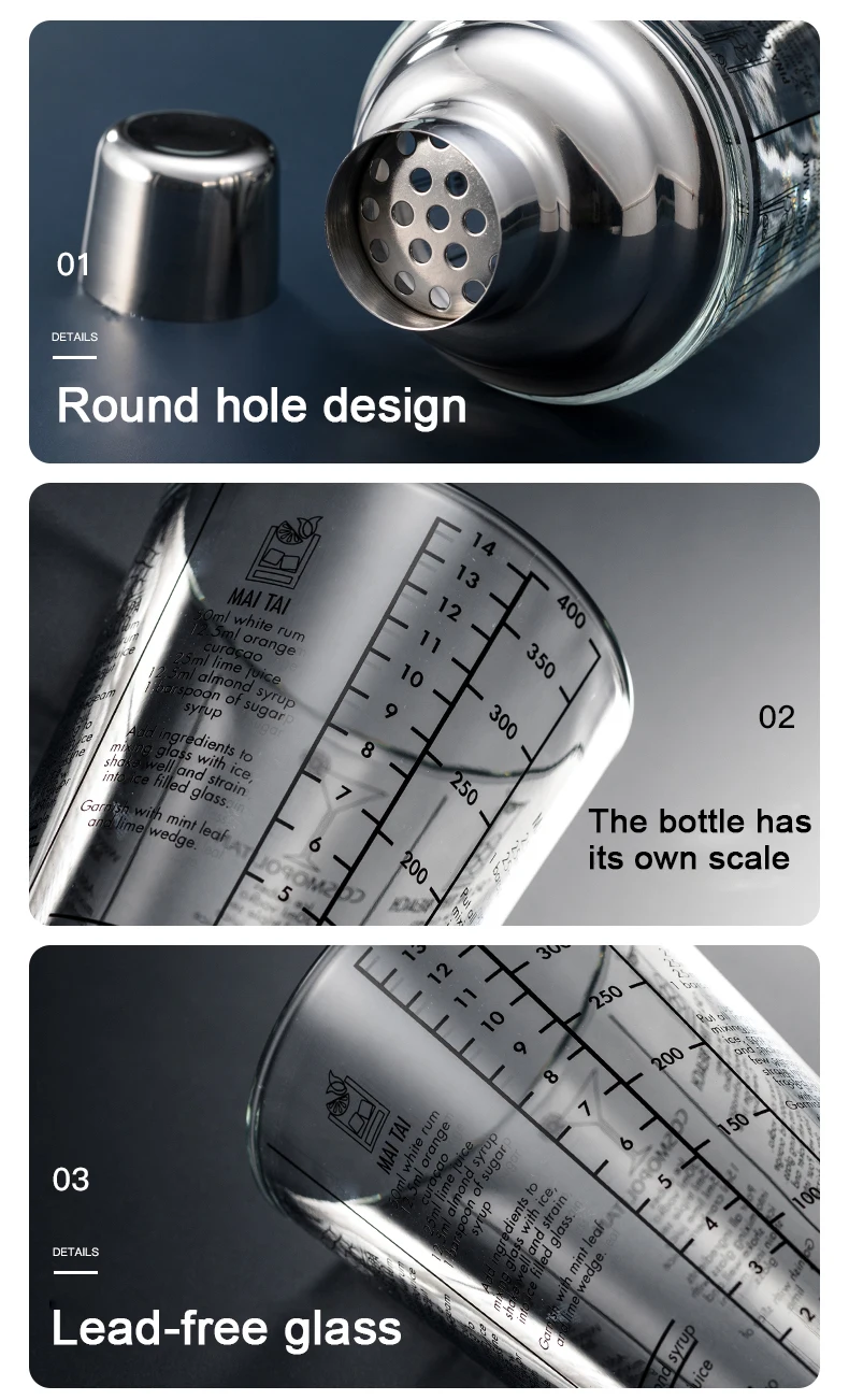 Тип: барный инструмент: Коктейльная шакерскопия: 400 мл 400 мл бутылка смесь мастер стекло прозрачная шкала шейкер для коктейлей 304 нержавеющая сталь бар и стеклянный шейкер Бар инструменты: фото цвет Материал: нержавеющая сталь + боросиликатное стекло размер: 5*21,5*7cmPackage
