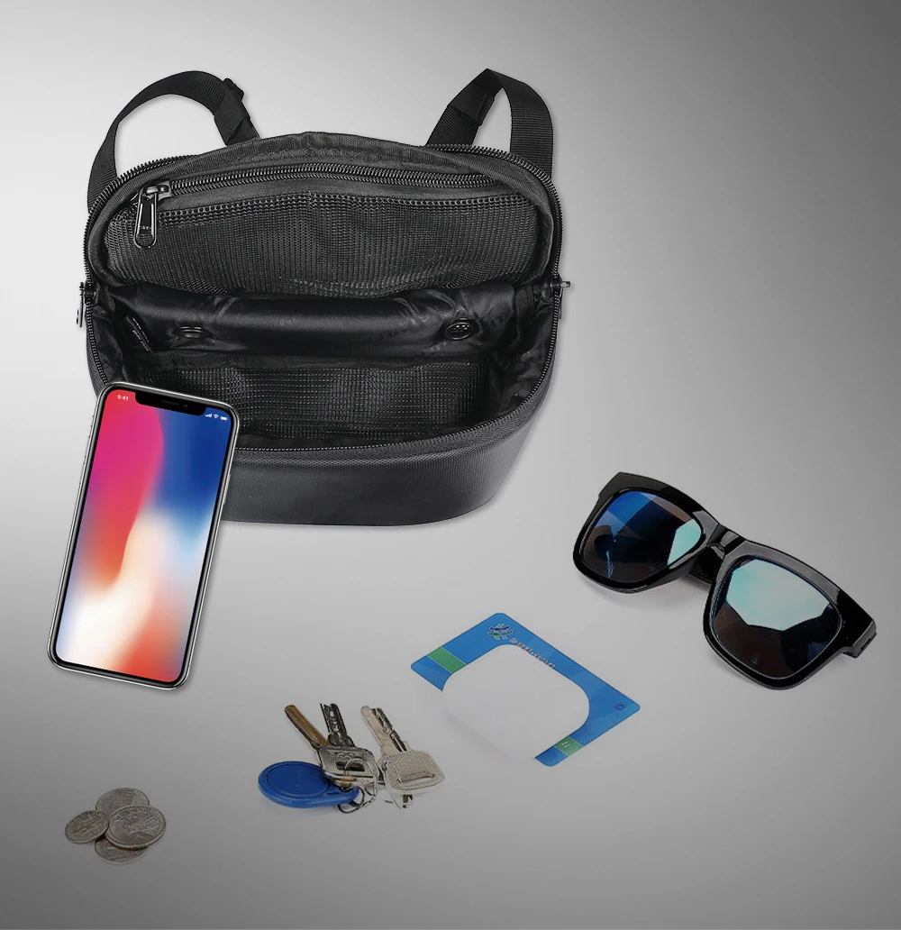 2. Большой дизайн пространства внутри сумки, храните личные вещи и предметы экстренной помощи в этой сумке; не беспокойтесь о путешествиях; удовлетворить ваши различные потребности. Внизу есть выходное отверстие 1,5 см для легкой зарядки, когда телефон отключен, или прослушивания музыки во время езды.