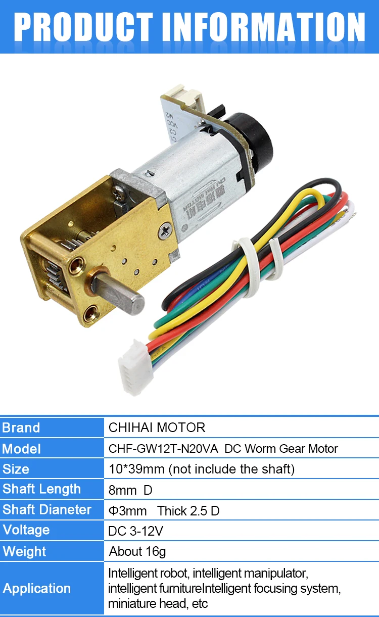 CHF-GW12T-N20VA Мини DC червячный мотор с кодировщиком