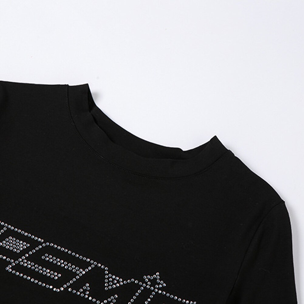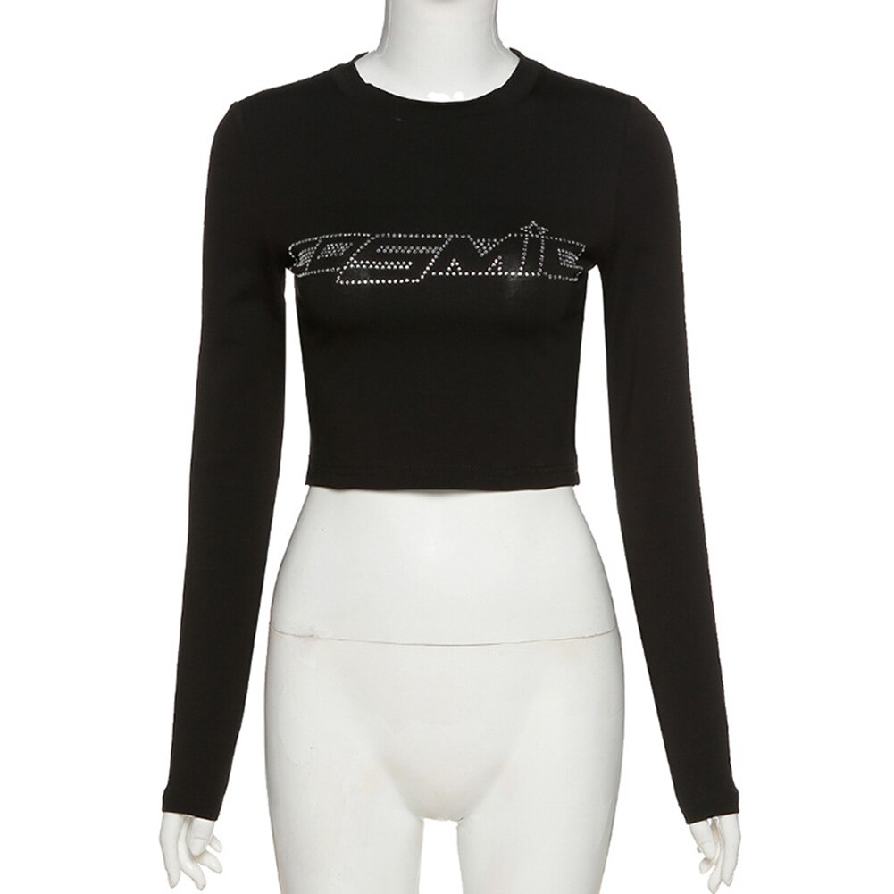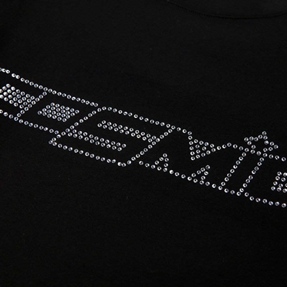 Харадзюку Женская летняя обувь Y2K топ с коротким рукавом, майка, блестящая Горячая Дрель Стразы космический: футболка с надписями и пупок тонкий жилет клуб в уличном стиле