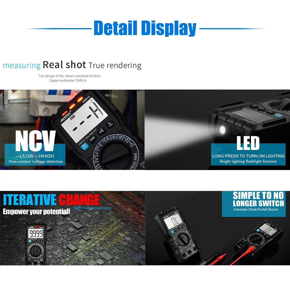 | Бесконтактное Обнаружение напряжения NCV | Дисплей-L, индикатор NCV зеленый светильник, звуковой сигнал |
