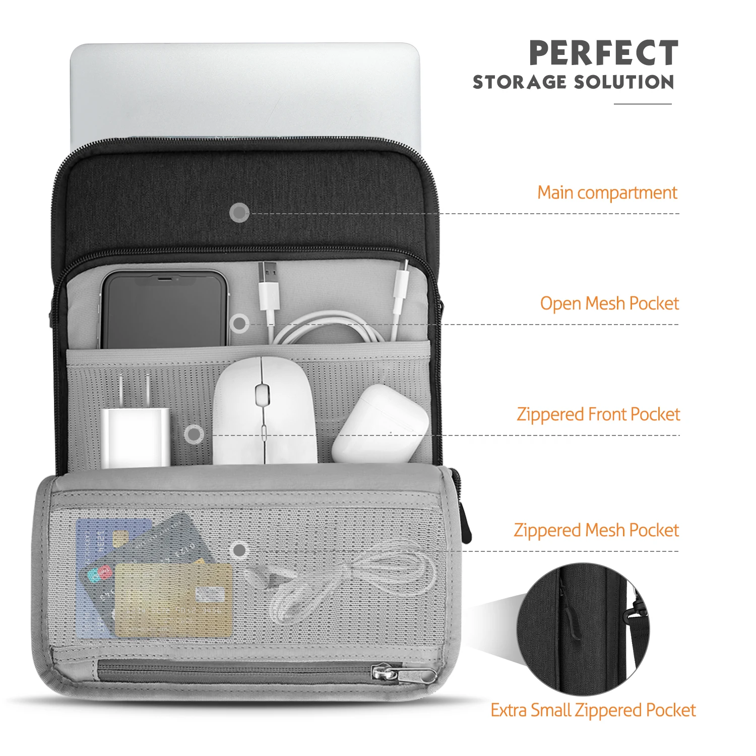 Совместимость: чехол-накладка предназначен для устройств с диагональю до 13,3 дюйма и подходит для умной клавиатуры. Совместимость с Macbook Air Retina 13,3 2018, Macbook Air 13,3 2019/2020, MacBook Pro 13,3 2020, iPad Pro 12,9 "2015, iPad Pro 12,9" 2018/2020 (с интеллектуальной клавиатурой folio), google Pixel Slate 12,3 "2018, Surface Laptop Go 12,4", Surface Pro X/3/4/5/6/7, Surface Book 3, ThinkPad X13 intel 13,3" 2020, ThinkBook Plus 13,3 "2020, ThinkPad X390 13,3" 2019. Материал премиум-класса: сумка изготовлена из высококачественного полиэстера, мягкая внутренняя подкладка и толстая губчатая подкладка, который не только защищает от брызг, но и защищает ваш ноутбук от царапин и ударов. Аккуратное хранение: есть несколько карманов для удобной организации вещей. Основной карман для размещения устройства до 13,3 дюймов. Открытый сетчатый карман для хранения телефона и USB-кабелей. Передний карман на молнии для хранения компьютерной мыши, внешнего аккумулятора и зарядных устройств. Вы также можете положить наушники и банковские карты в другой сетчатый карман на молнии. Кроме того, есть еще очень маленький карман на молнии для защиты других ваших личных предметов. Застежка-молния: прочная и гладкая застежка-молния обеспечивает легкий доступ к вашему устройству и аксессуарам. Портативность: с размером 13,19 "x 10,43" x 1,18 "(33,5x26,5x3 см) и с наплечным ремнем, удобно класть в сумку, выходя на улицу. Пожалуйста, обратите внимание, что Измерьте размеры вашего устройства перед покупкой.
