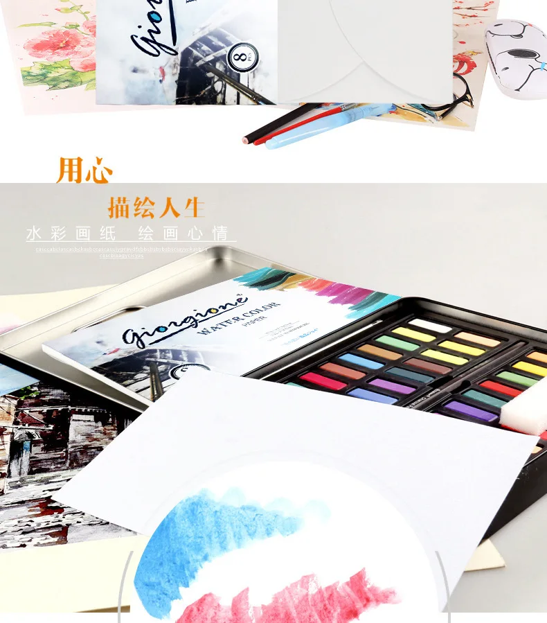 Особенности: всего 8 листов, без нейтральных и кислотных кислот, хорошая прочность, удобство переноски, домашняя Акварельная бумага, подходит для акварельных картин, акварельные иллюстрации, расписанные вручную, водорастворимые цветные свинцовые картины для выполнения различных ежедневных упражнений акварелью. Легко носить с собой.