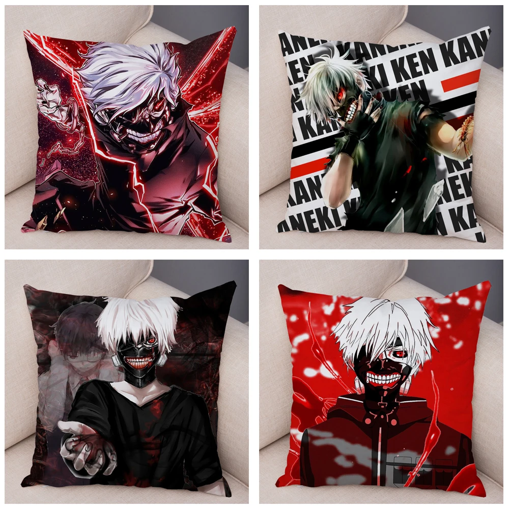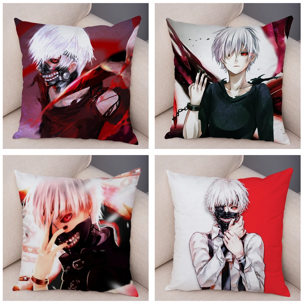 Чехол для дивана Tokyo Ghoul, домашний декор для детской комнаты, мультяшный аниме Kaneki Ken, наволочка, мягкий плюшевый чехол для подушки 45x45cm