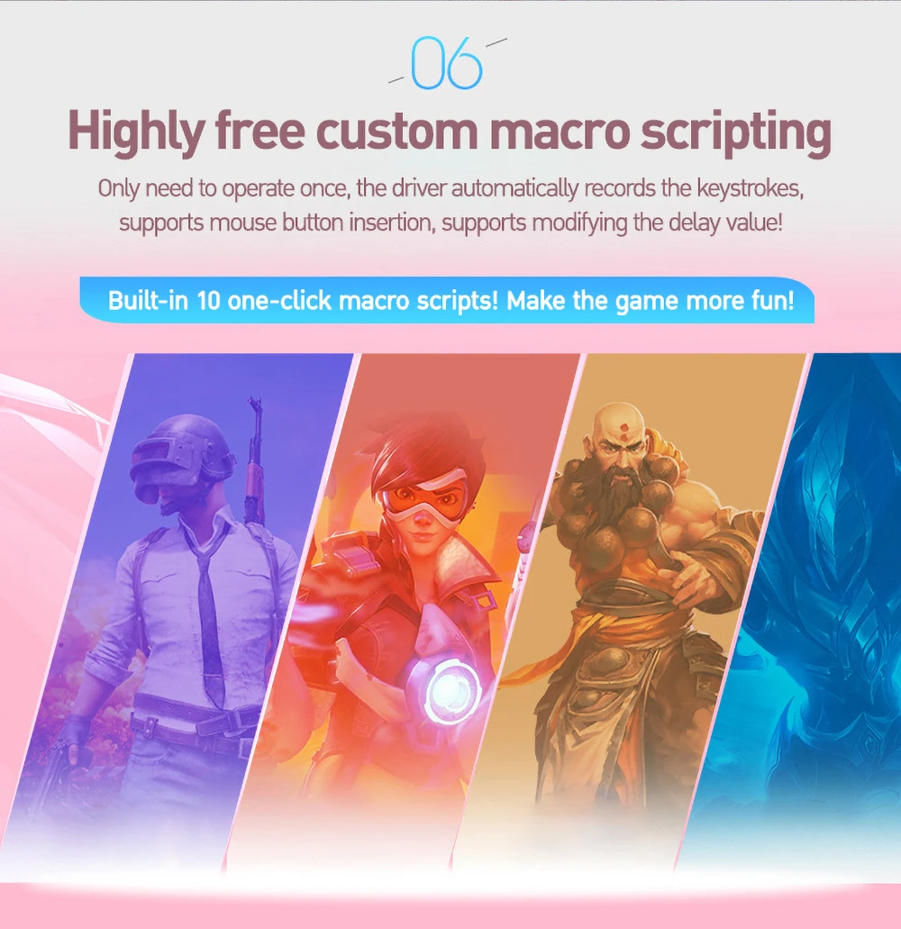 1. Милый цвет-вишневый цвет с водяным охлаждением, с гальваническим покрытием крыльев, семицветным дыхательным светом и игровым двигателем. 2. Скраб слоя кожи, как кожный удерживает ощущение, уменьшает потоотделение и скольжение, что затрудняет снятие. 3. Широкие клейкие наклейки три в одном, стабильная работа-использование прочных износостойких UPE гладких и расширенных наклеек для ног, плавное движение и точная работа. 4. Двойные крылья гальванизированного турбо спортивного автомобиля используются для того, чтобы две стороны мыши не были удобны в носке, обеспечивая визуальное и практичное двойное улучшение. 5. Элегантный семицветный дыхательный фонарь-это крутое обновление-обращаясь к дыхсветильник вой системе в форме спортивного автомобиля, он имеет как умные передние фонари s, так и многослойные задние фсветильник s, сочетается с алмазной трещиной светильник s вокруг тела и имитирует эффект стример с водяным охлаждением light s. Ваш новый визуальный опыт. 6. Очень свободный пользовательский сценарий макросъемки-нужно использовать только один раз, драйвер автоматически записывает нажатия клавиш, поддерживает вставку кнопки мыши и поддерживает изменение значения задержки.