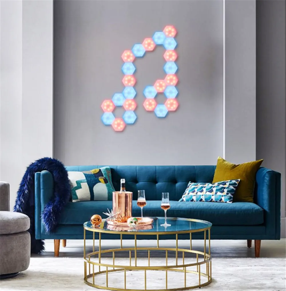 1. Это модульный сенсорный настенный светильник. Используйте шестиугольный флоппи-диск для создания любой структуры, чтобы удовлетворить ваши потребности, затем включите и выключите, прикоснувшись к нему.