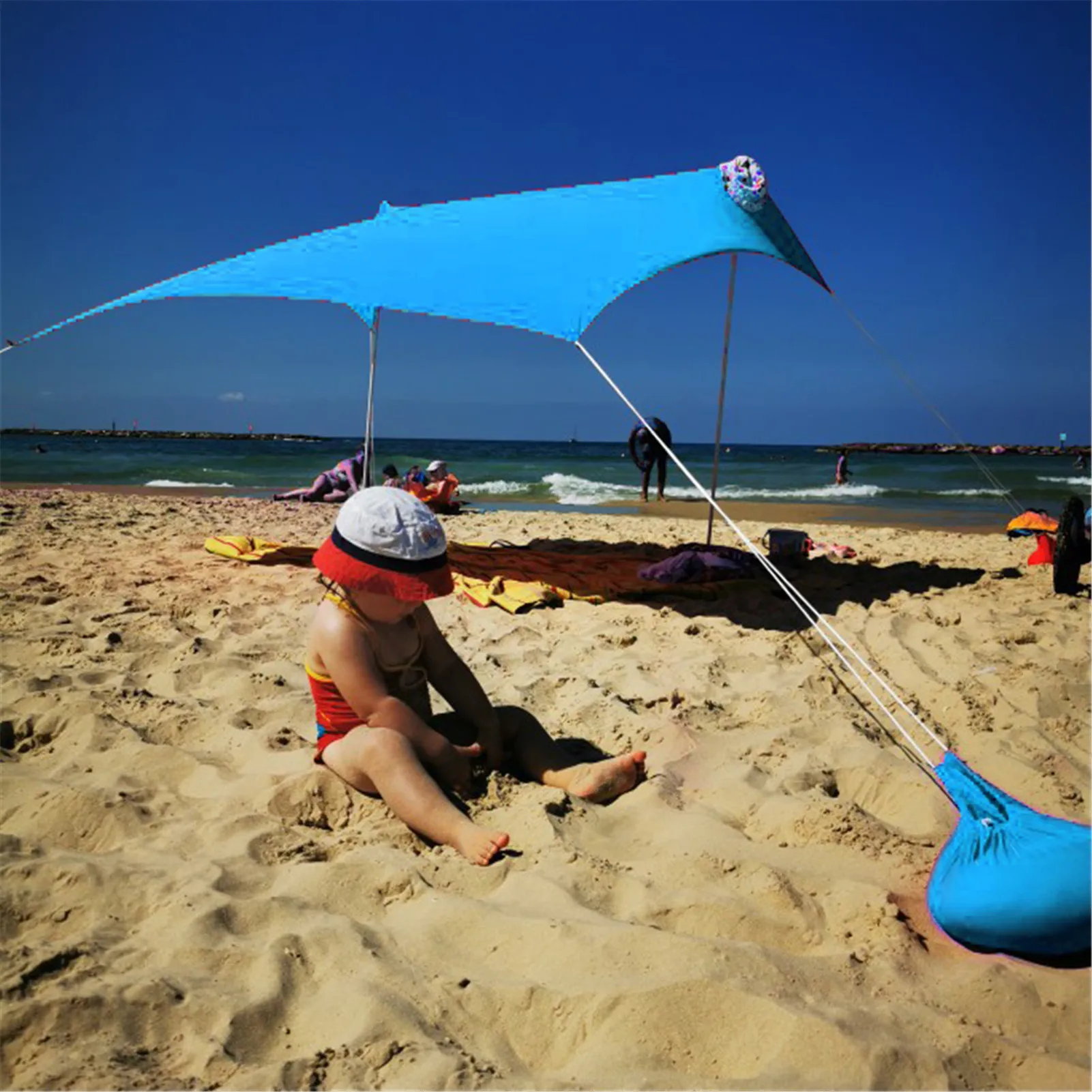 Модный навес от солнца, опорный стержень может быть свободно изменен для лучшего эффекта от солнца. Эластичная ткань UPF50 +, гибкая, прочная, простая в сборке и удобная в переноске. Подходит для пляжного отдыха.