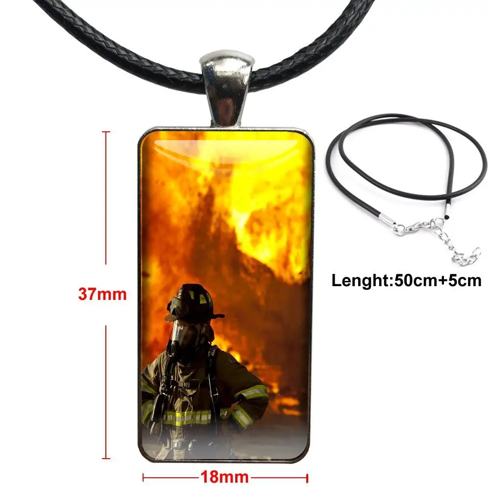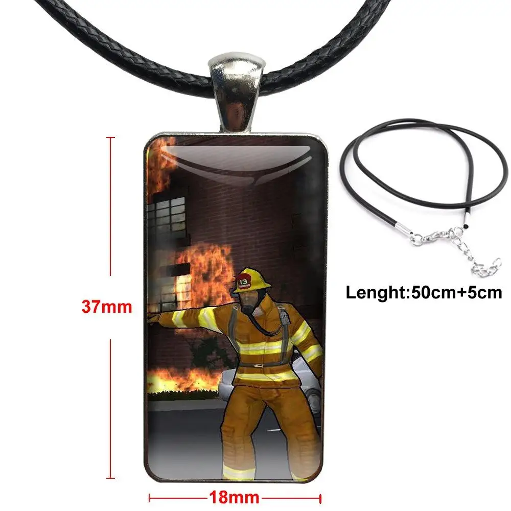 Подарок на Рождество, стальной цветной стеклянный кабошон с прямоугольной подвеской, колье, ожерелье, настоящие герои, пожарный