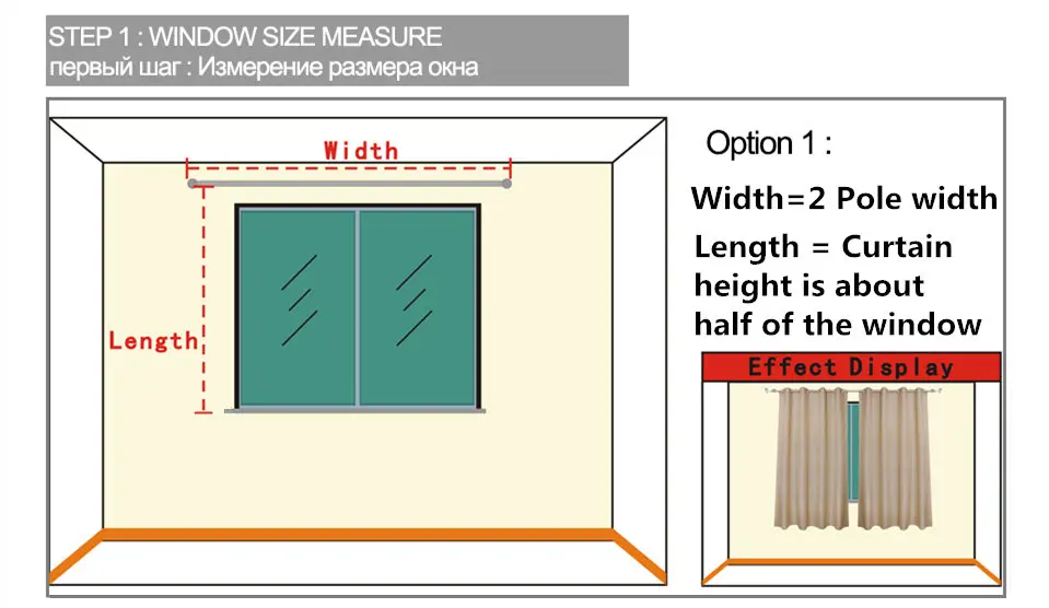 6. Ширина штор = 2 раза ширина стержня/рельса.